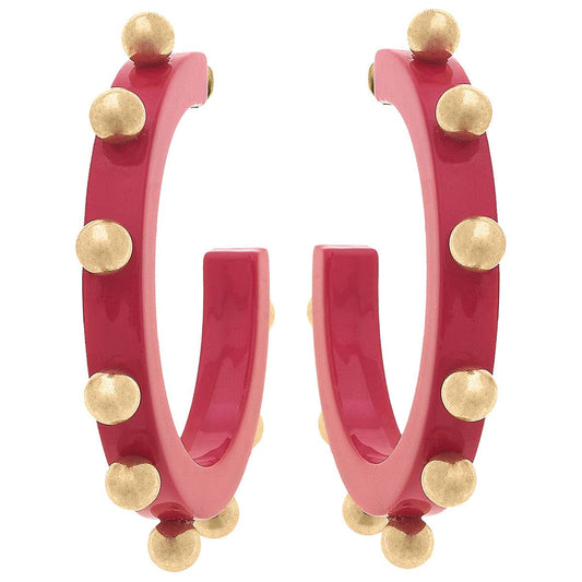 Kelley Studded Metal and Resin Hoop Earrings
